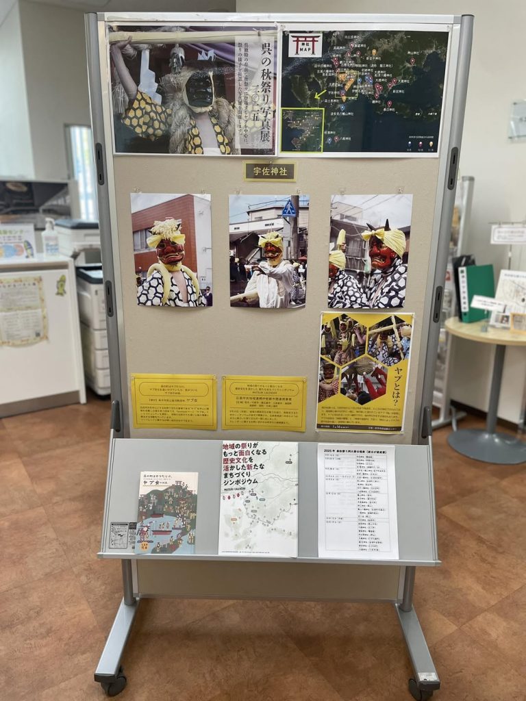 また、祭りに関連する資料として、広島中央地域連携中枢都市圏連携事業で作成された呉市内外の祭りカレンダー「地域の祭りがもっと面白くなる歴史文化を活かした新たなまちづくりシンポジウム MATSURI CALENDAR」と市民公益活動団体のヤブ女がヤブを紹介するリーフレット「呉の町はヤブだらけ。ヤブ文化を追いかけていたら、気がついたヤブ女のお話。」を配布しています。