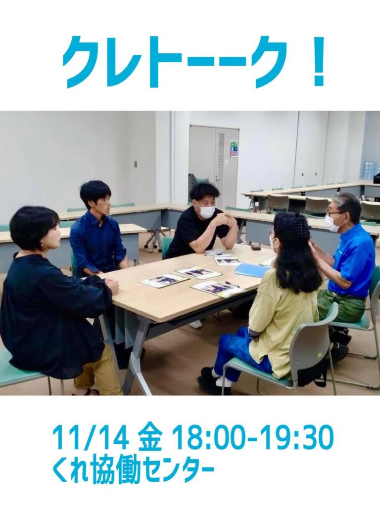 ●問合せ くれ協働センター(火-土9時-20時/日祝9時-17時)