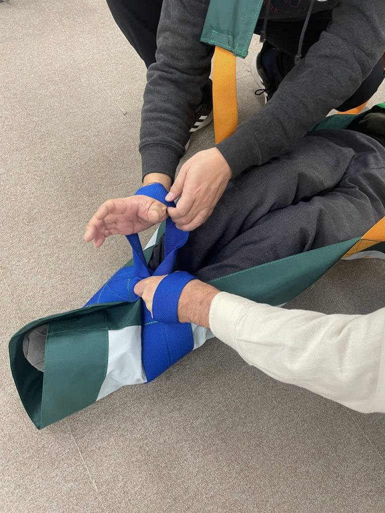 3人で運べるため、一人一人の負担が大きくないこと、声かけをして3人同時に歩くことが意外と難しかったこと、担架に乗っているスタッフは思った以上に身体への負担がなく安心感があったことなど、使ってみて分かったことがありました。