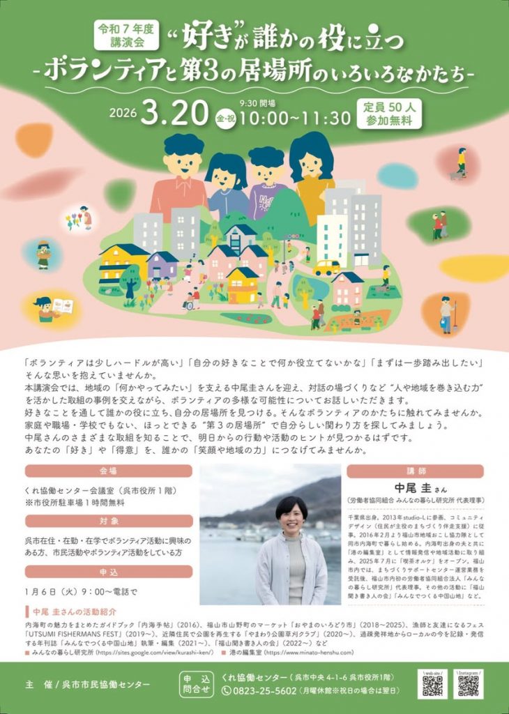 対象:呉市在住・在勤・在学でボランティア活動に興味のある方、市民活動やボランティア活動をしている方