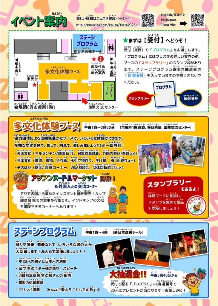 国際交流フェスタの詳しい内容は特設サイトはこちら▼http://kurekiea.com/kouza/festa2026/