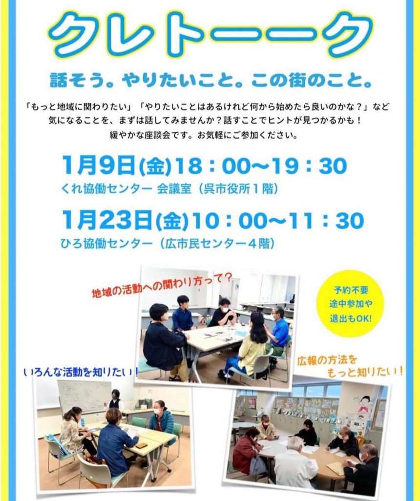 ●問合せ くれ協働センター(火-土9時-20時/日祝9時-17時)