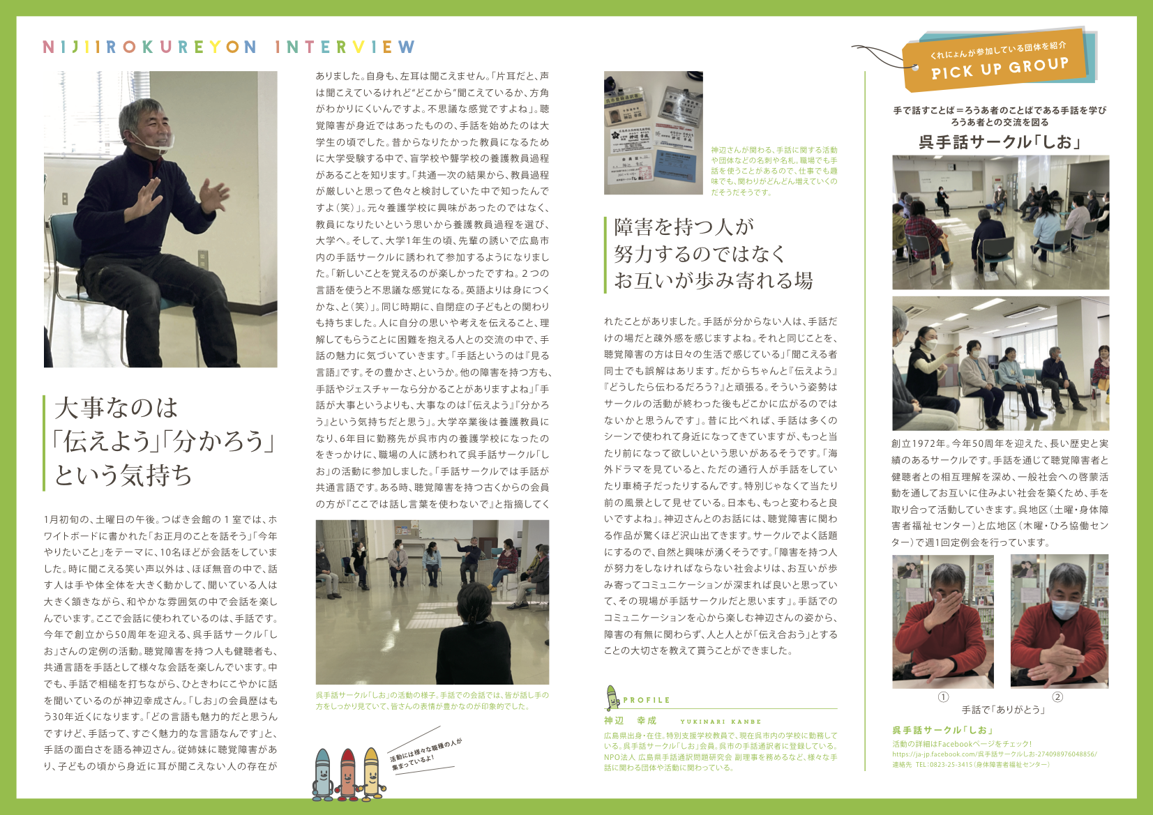 (22) 呉手話サークル「しお」神辺 幸成さん くれ&ひろ協働センターだより 本文はこちら