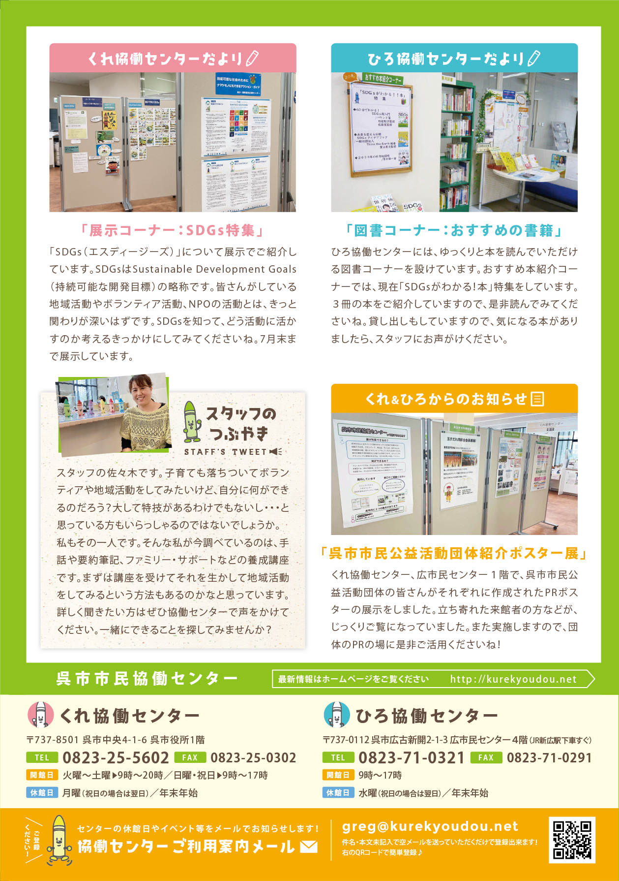 (30)さっこ/comodoくれ 松田愛さん くれ&ひろ協働センターだより 本文はこちら