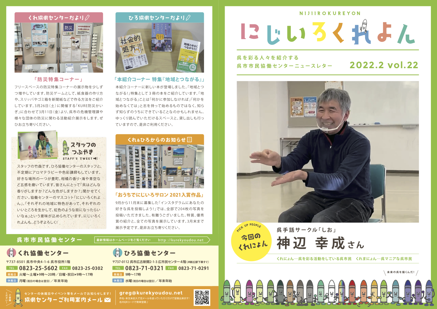 (22) 呉手話サークル「しお」神辺 幸成さん くれ&ひろ協働センターだより 本文はこちら
