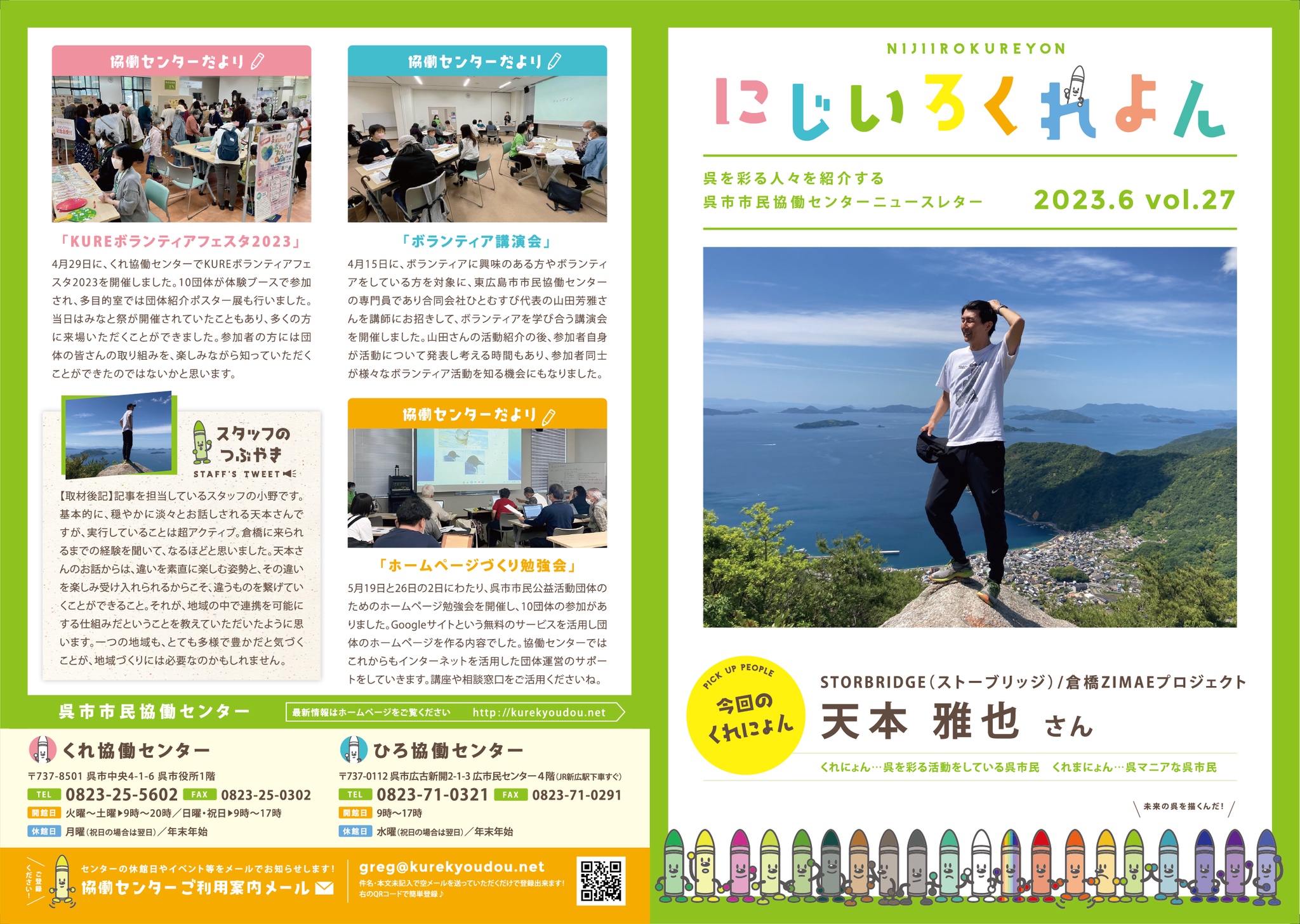 (27)STORBRIDGE/倉橋ZIMAEプロジェクト 天本 雅也さん くれ&ひろ協働センターだより 本文はこちら