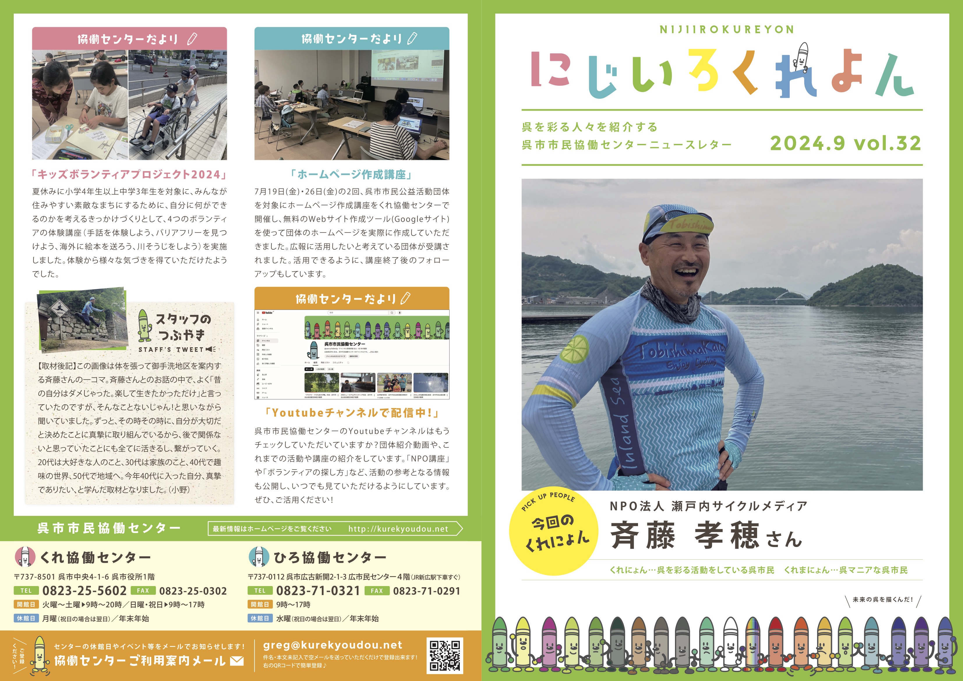 (32) NPO法人瀬戸内サイクルメディア 斉藤孝穂さん くれ&ひろ協働センターだより 本文はこちら