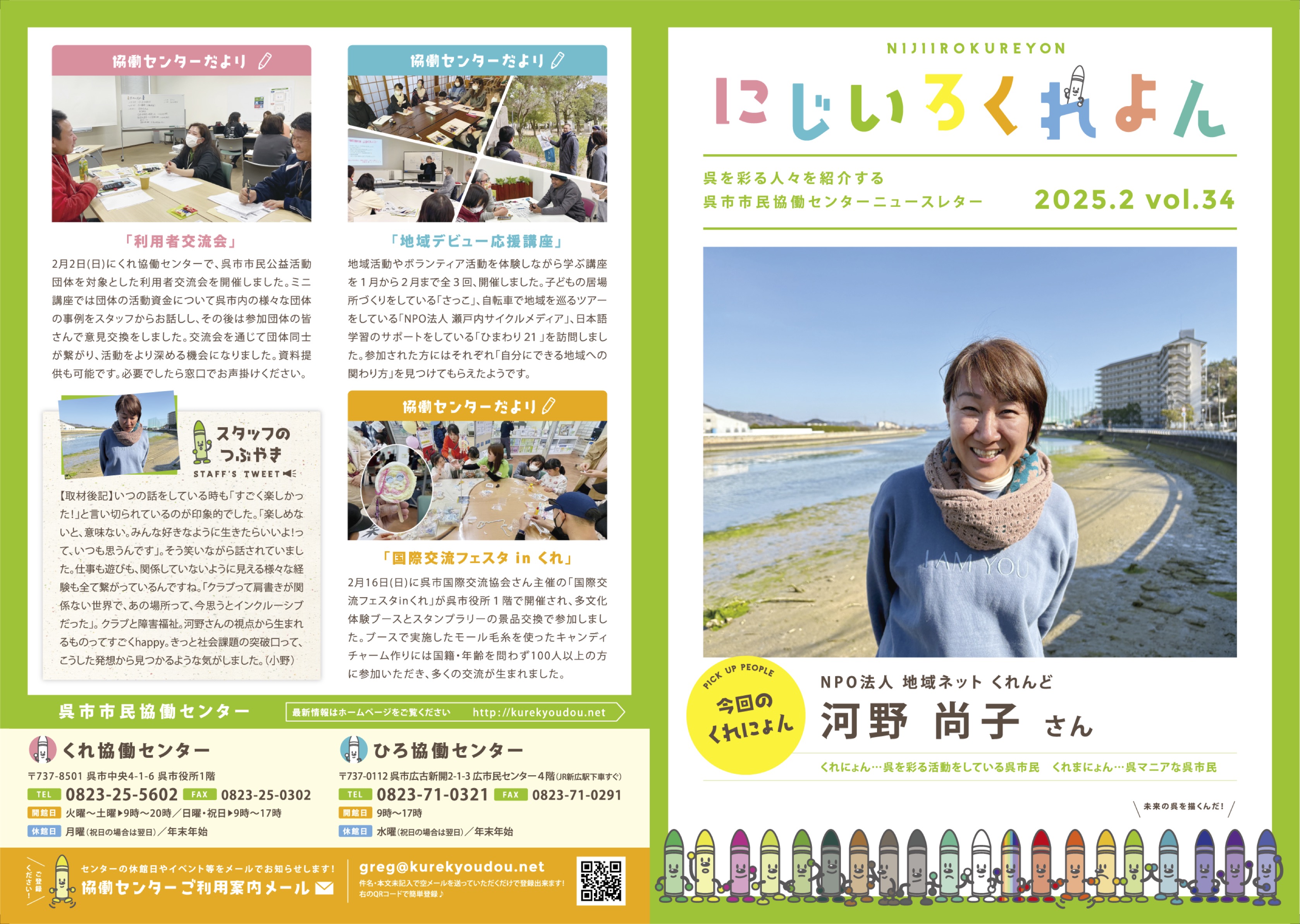 (34) NPO法人地域ネットくれんど 河野尚子さん くれ&ひろ協働センターだより 本文はこちら