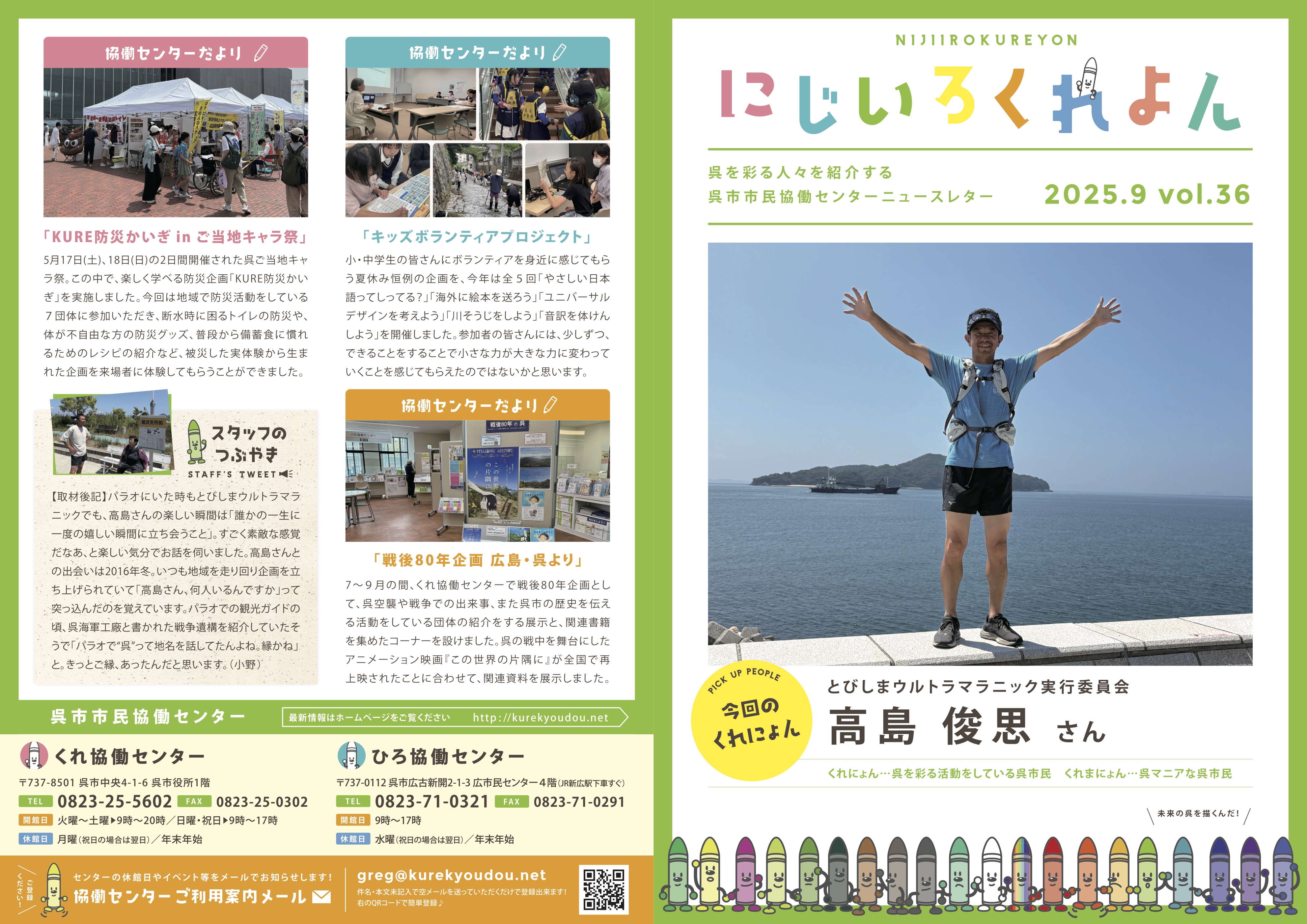 (36) とびしまウルトラマラニック実行委員会 高島俊思さん くれ&ひろ協働センターだより 本文はこちら