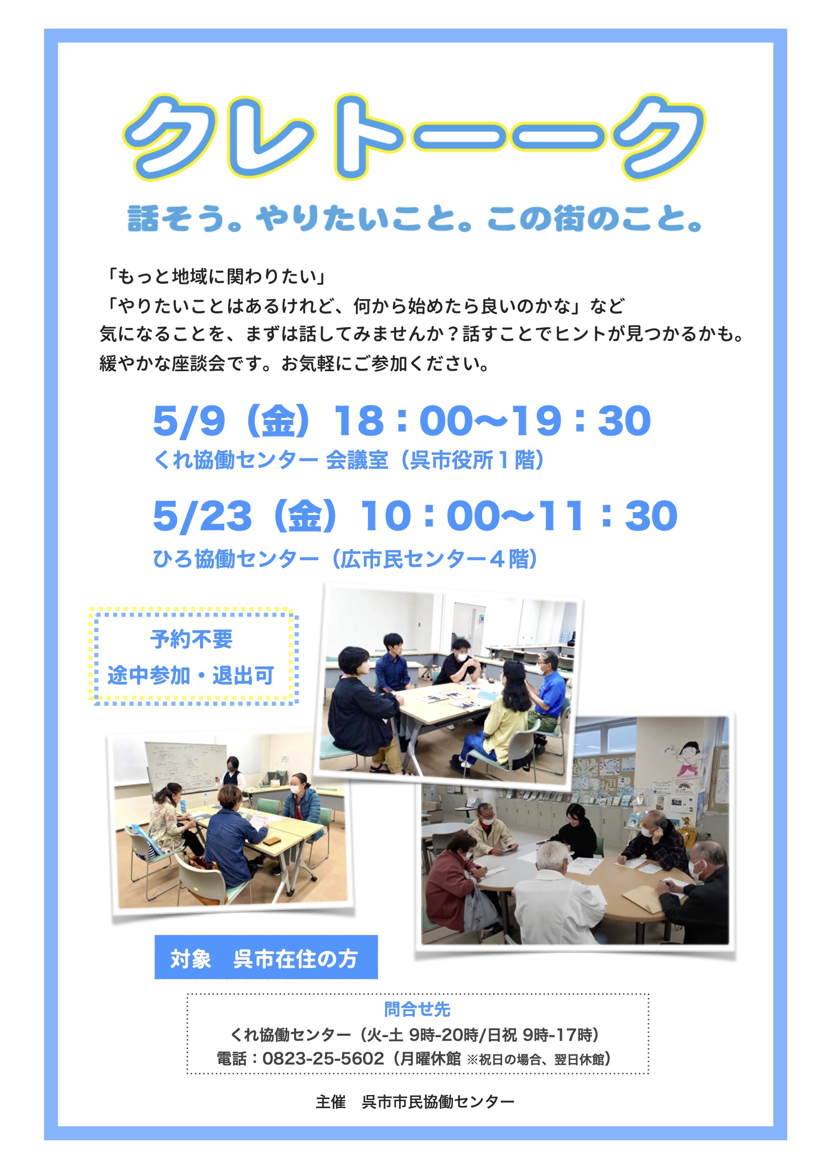 問合せ:くれ協働センター(火-土9時-20時/日祝9時-17時)