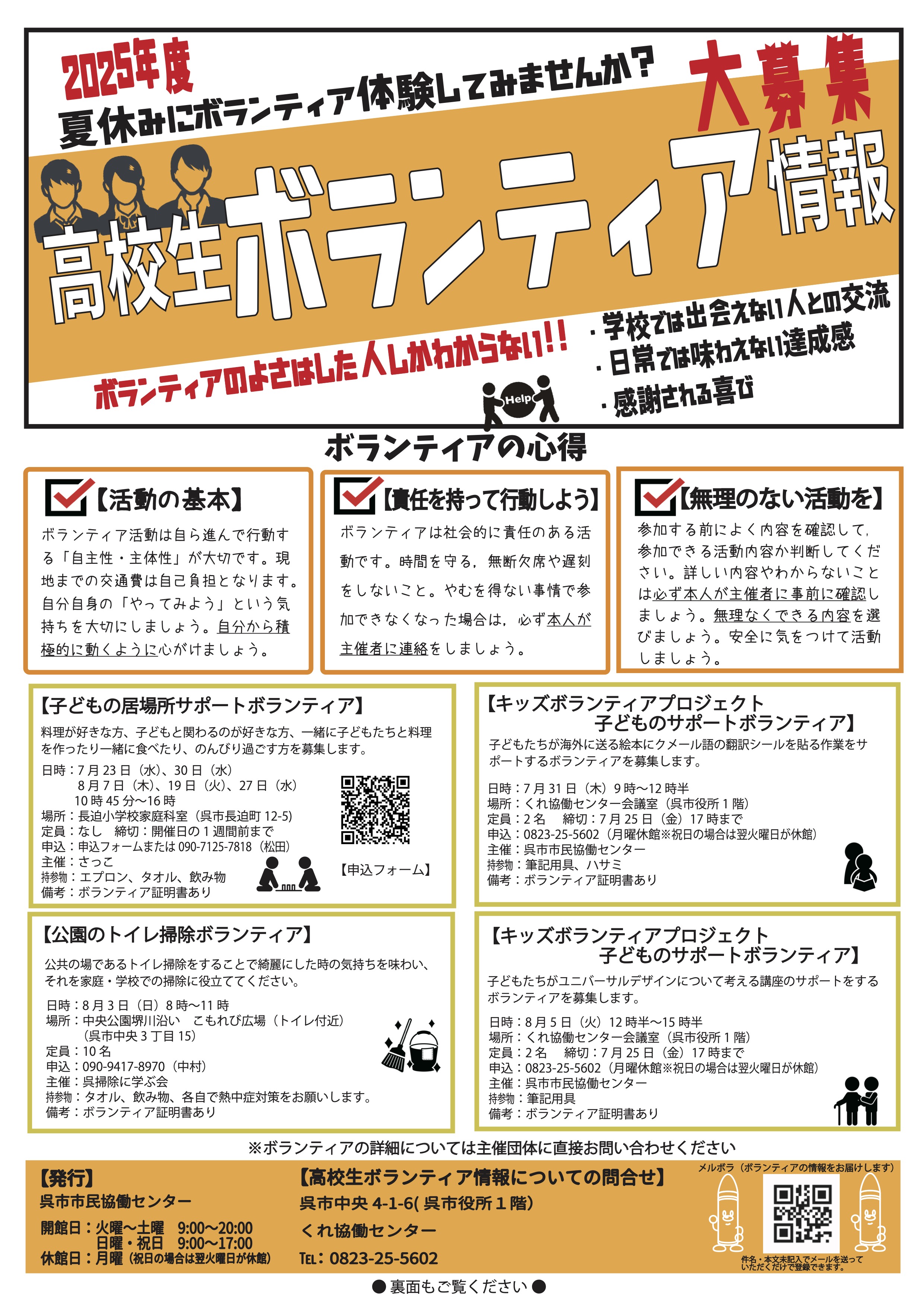 問合せ・連絡先:呉市青年ボランティア協議会事務局