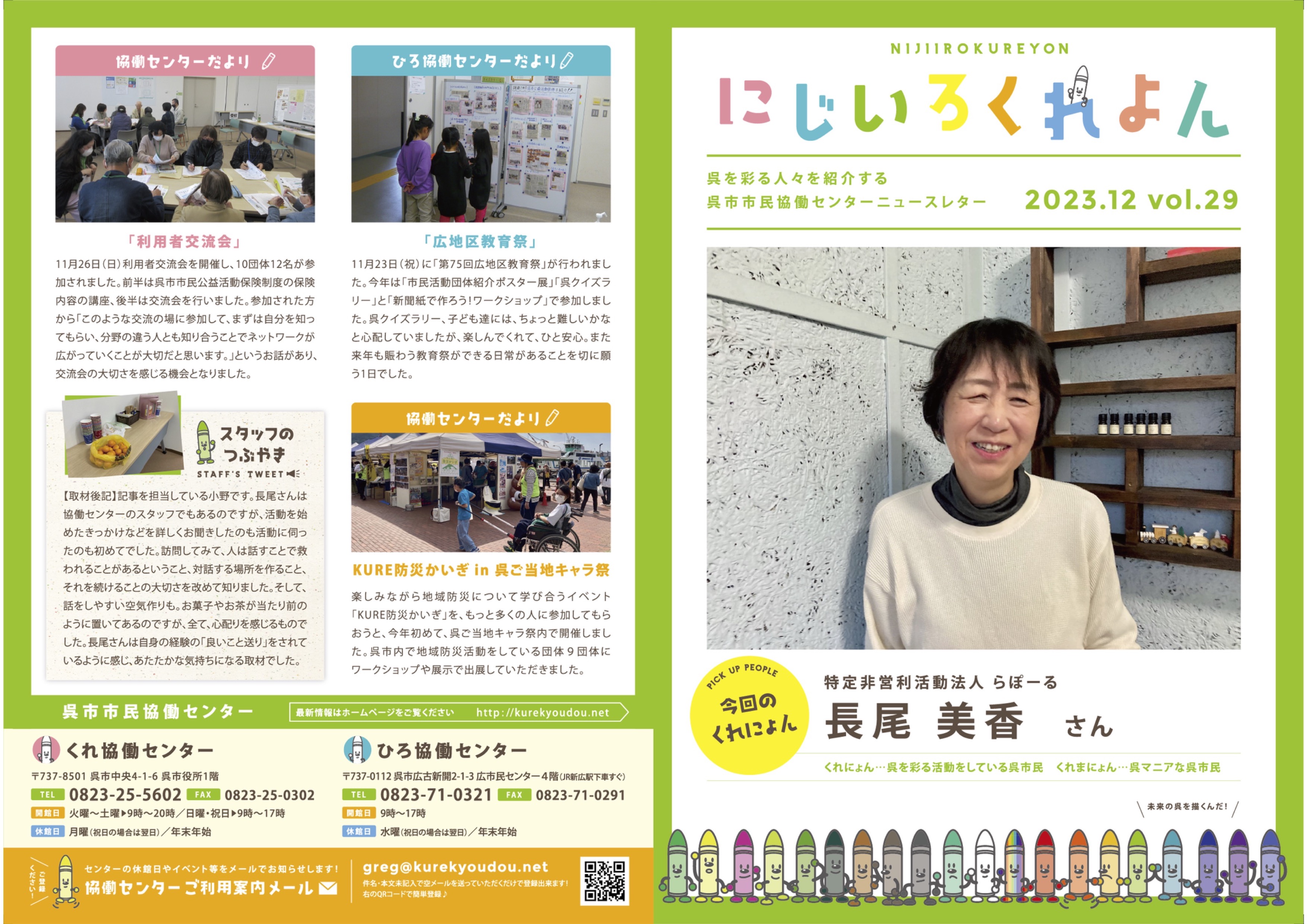 (29) 特定非営利活動法人 らぽーる 長尾美香さん くれ&ひろ協働センターだより 本文はこちら