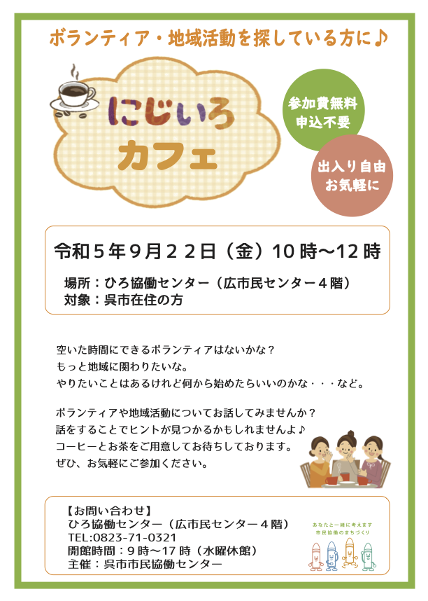日 時:2023年9月22日(金)10:00~12:00(出入り自由)