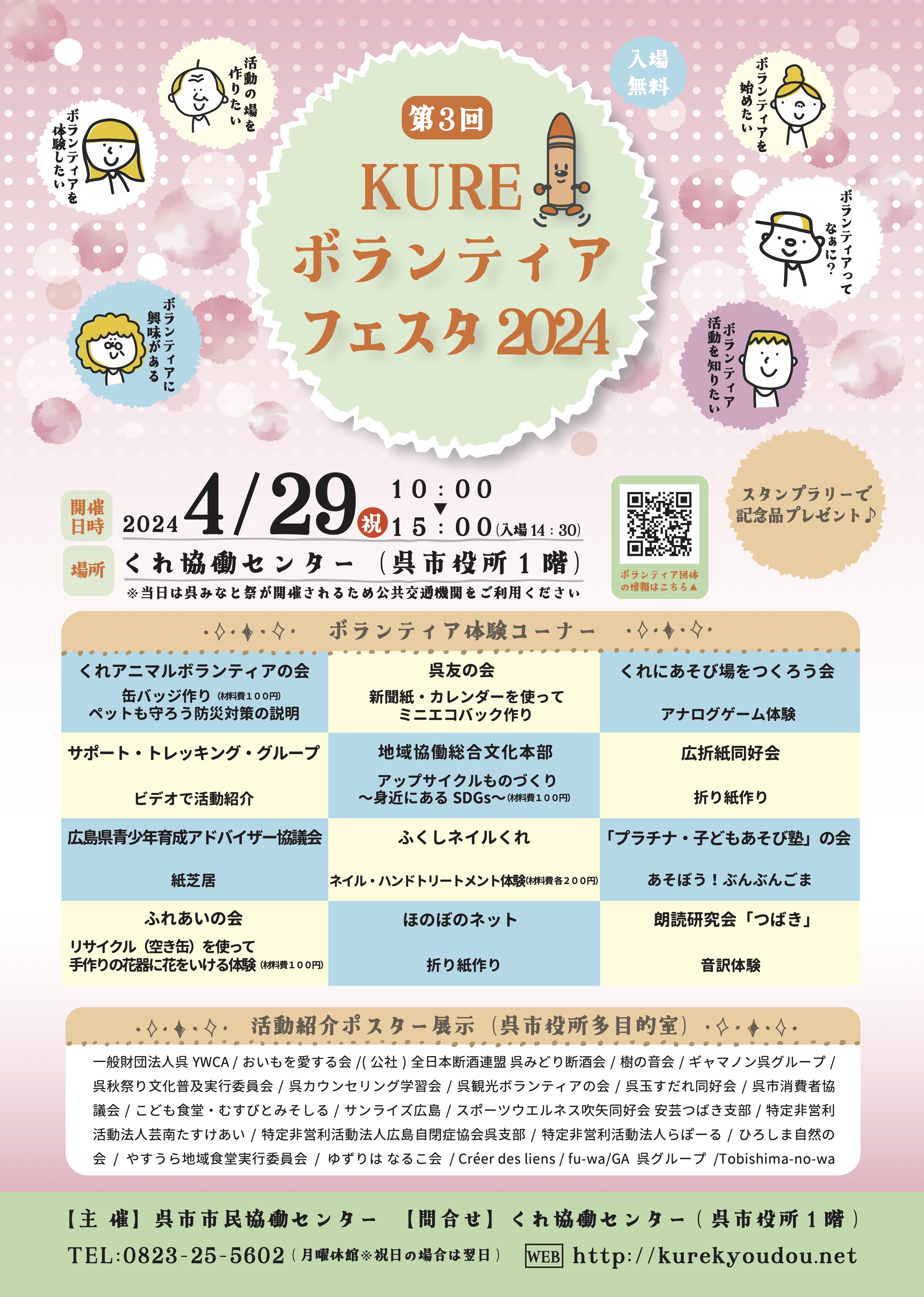 【問合せ】くれ協働センター TEL:0823-25-5602(月曜休館※祝日の場合は翌日)