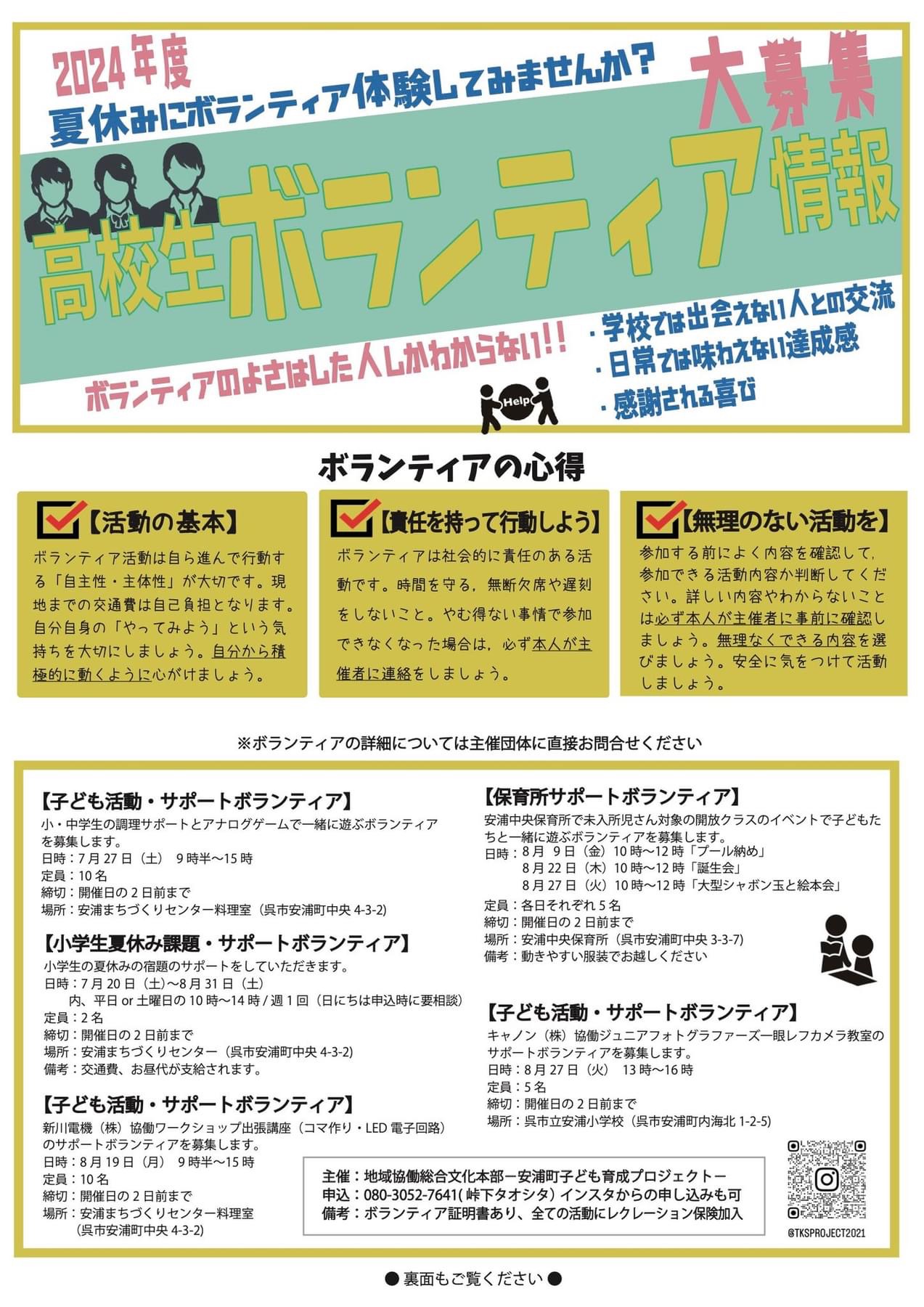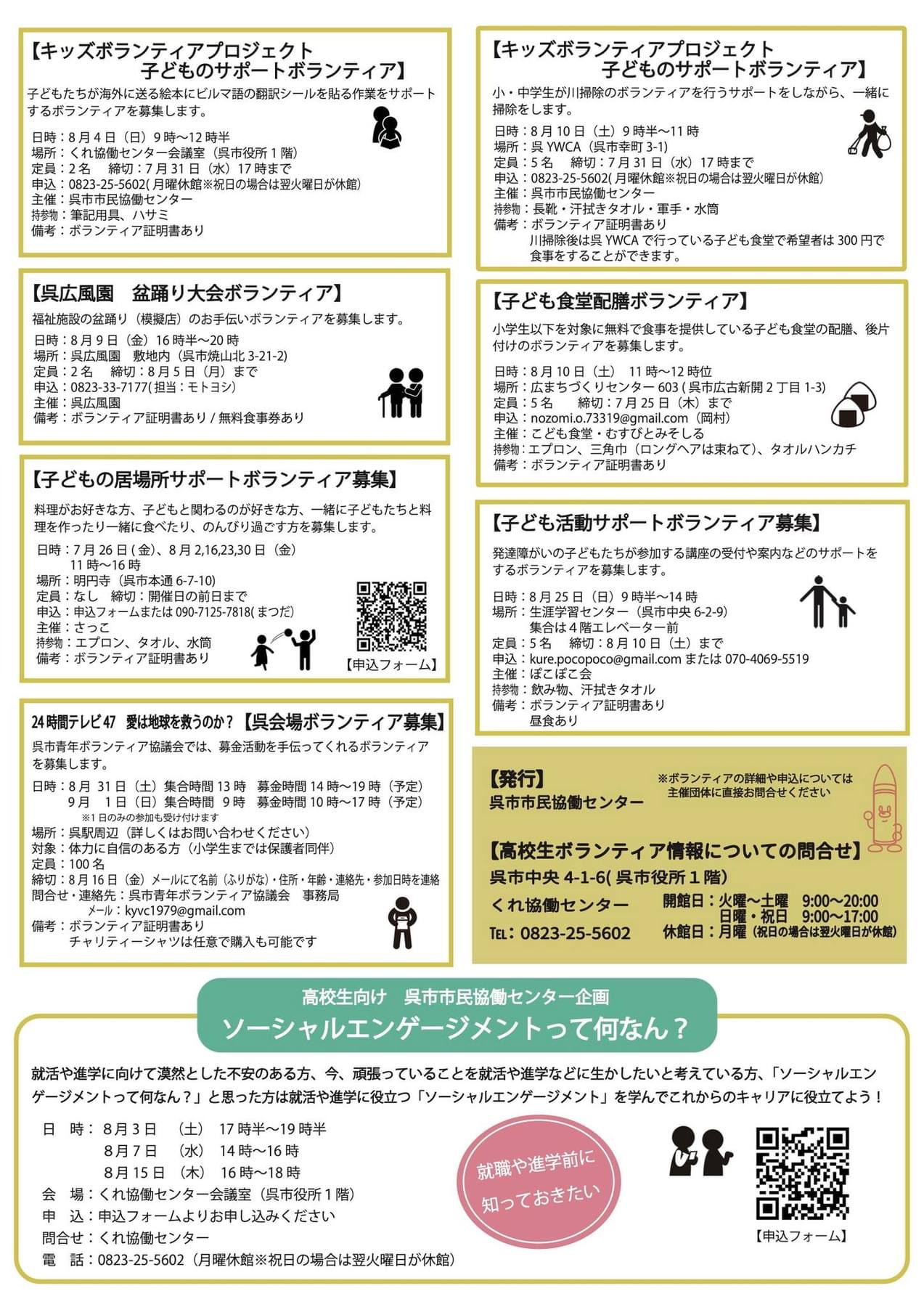 高校生対象のボランティア情報です。